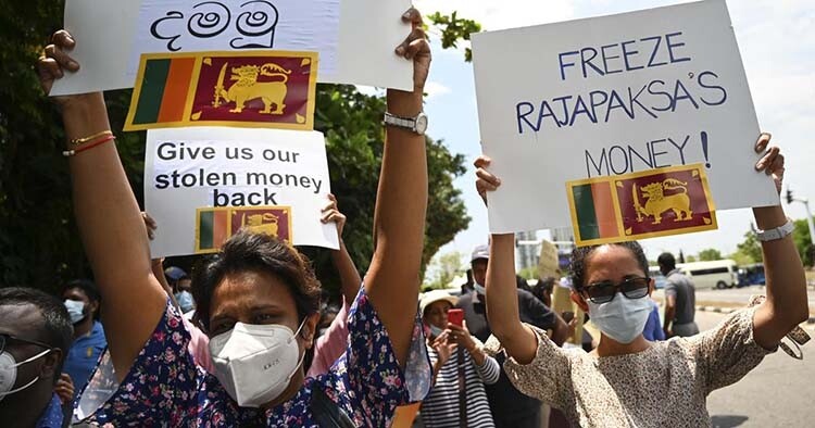După ce a fugit din țară din cauza revoltelor, Rajapaksa a susținut că o salvare a Fondului Monetar Internațional (FMI) era singura opțiune